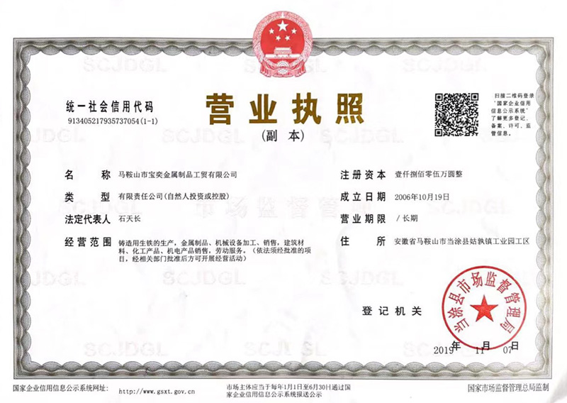 馬鞍山市寶奕金屬制品工貿(mào)有限公司坐落在當(dāng)涂縣姑孰工業(yè)園集中區(qū)內(nèi),北臨古都南京、西臨長(zhǎng)江水運(yùn),交通便利。寶奕金屬于2010年8月正式投產(chǎn),公司主要經(jīng)營(yíng)鑄造用生鐵的生產(chǎn),金屬制品、機(jī)械設(shè)備加工、銷(xiāo)售,建筑材料、化工產(chǎn)品、機(jī)電產(chǎn)品銷(xiāo)售等。我們提供各種來(lái)樣加工定制,我司堅(jiān)持科技創(chuàng)新和產(chǎn)品研發(fā)。 我們與安徽合力股份有限公司、浙江中力機(jī)械有限公司、江蘇靖江?華機(jī)械設(shè)備有...